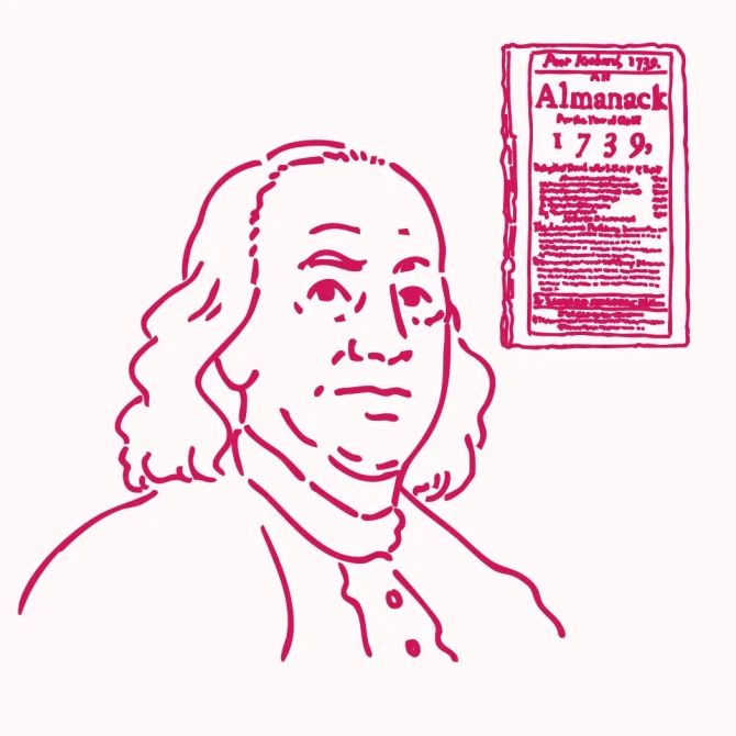 西洋のアルマナックのほうも暦を中心に庶民的な生活百科事典のような体裁をとっています。アルマナックで有名なのはベンジャミン・フランクリンの「貧しいリチャードの暦」です。現在でもアメリカには「農民暦」が広く使われていますが、いずれも暦にあたる単語はアルマナックです。フランクリンの活躍したペンシルヴァニア州には「ペンシルヴァニア・アルマナック」と称する大部の本があり、歴史、政府、自然資源、レクリエーション、商業、人々、教育、芸術&文化、農業、天候といった章を立てています。物産市など各種イベントの開催期間なども載っていて、たしかに暦の痕跡は残していますが、聖人の日や祝日などの記載がある通常のカレンダーはどこにもみあたりません。