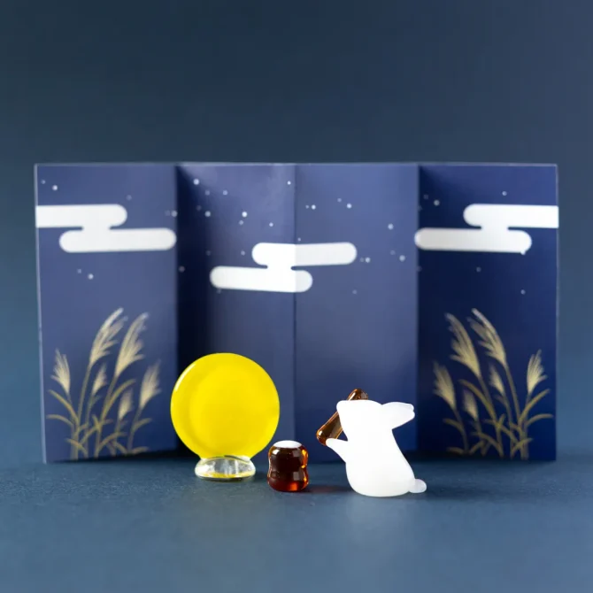 ミニチュアガラス細工 お月見うさぎ 「暦生活の季節飾り 十五夜」