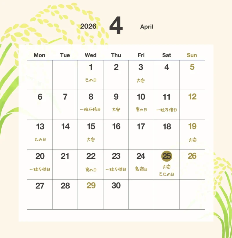2026年4月の縁起のいい日