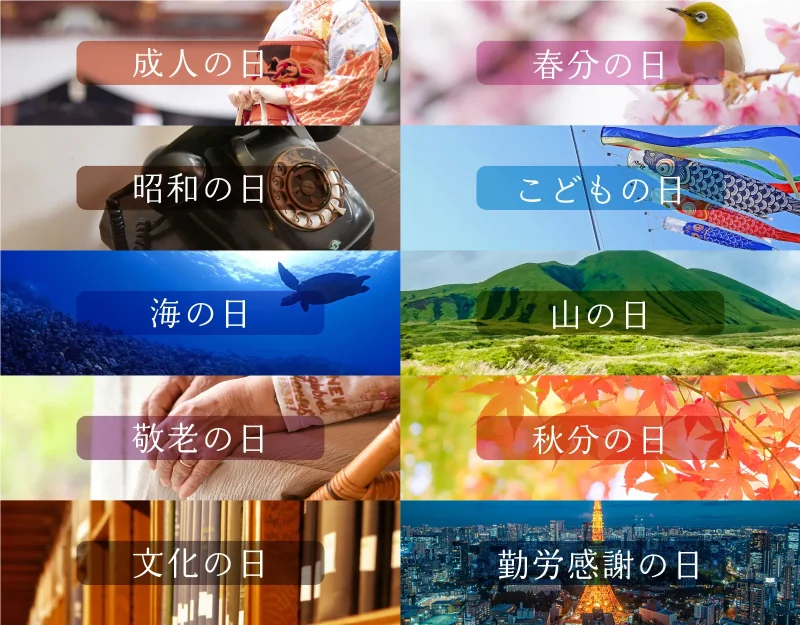 私たちの暮らしに身近な10の祝日、「成人の日」「春分の日」「昭和の日」「こどもの日」「海の日」「山の日」「敬老の日」「秋分の日」「文化の日」「勤労感謝の日」のうちいずれかを季語として用いた俳句を募集します(傍題可)。