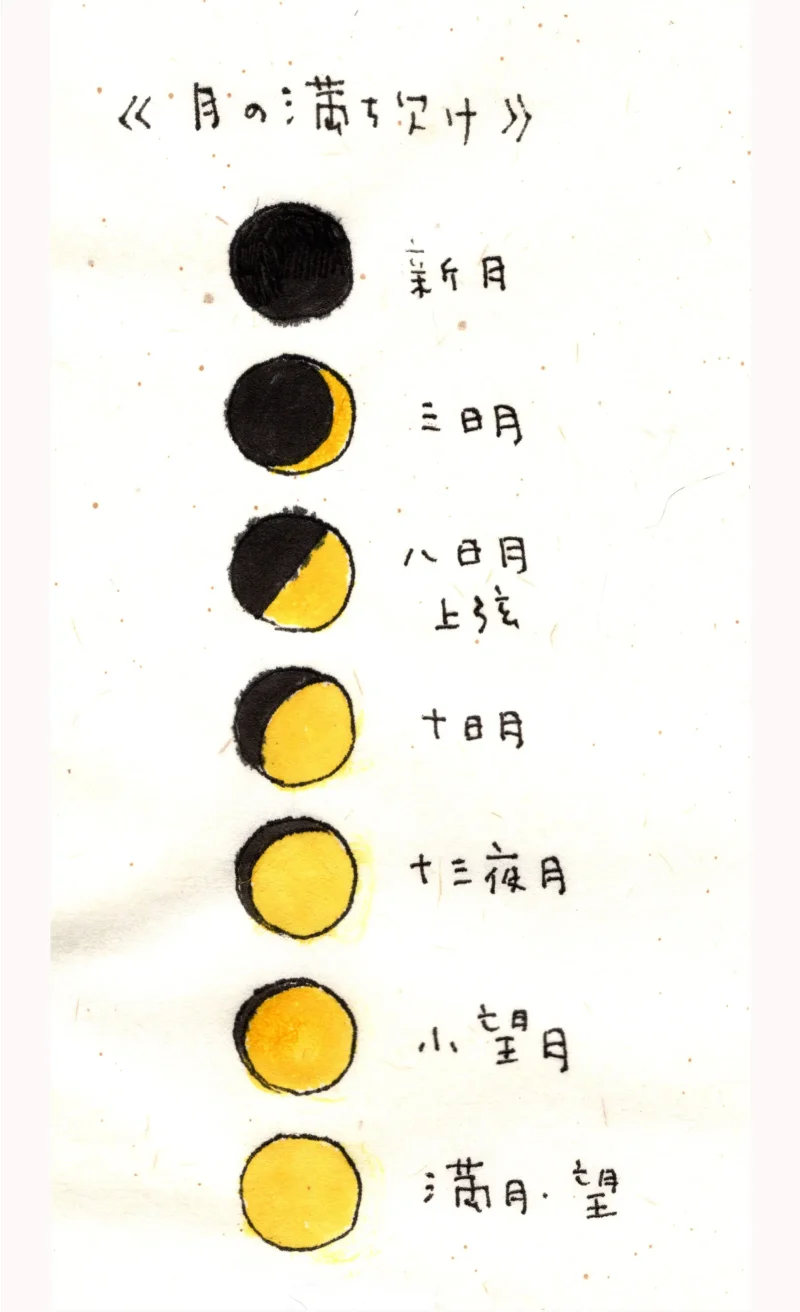 月の出は、毎日約50分ずつ遅くなります。満月は日没とほぼ同時に出ますが、その後の月は、次第に出る時間がずれていきます。そんな遅い時間に出る月を見るために、「月待ち」という言葉もあるくらい。満月だけでなく、いろいろな月を見る習慣があったのですね。今よりも、人々は月とかなり親密に暮らしていたといえそうです。