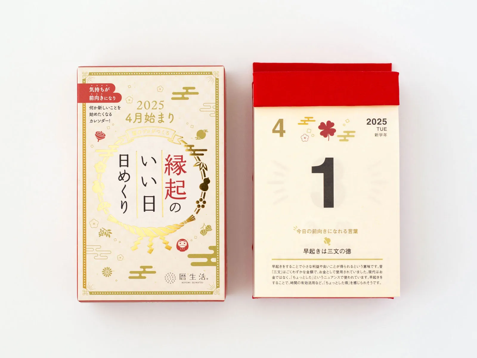 縁起のいい情報満載の、吉日日めくりカレンダー。お使いいただく方に毎日前向きな気持ちで過ごして欲しい、という思いを込めて、『縁起のいい日』を集めたカレンダーをつくりました。