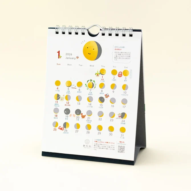 暦生活の「お月くん」と一緒に、月や季節を楽しむカレンダーです。