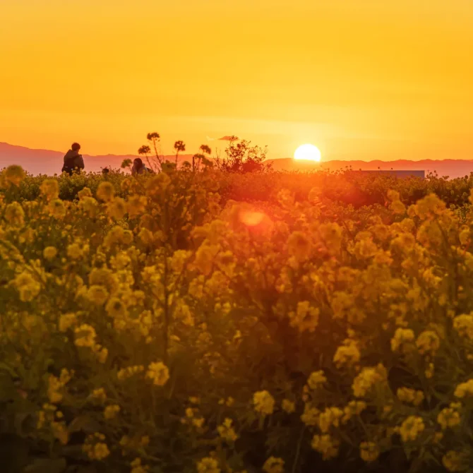春分といえば、蕪村のこの句が有名です。真西に沈む太陽と黄色に輝く菜の花畑。壮大な春の風景が目に浮かびます。