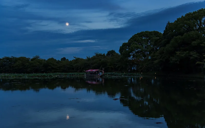 水面に映る月影のゆらめきを眺めながら、月なみ(月日)を数えてみれば、ああ今宵こそまさに秋の真ん中であったかと気づく――。水面に映る月光と、時の移ろいをひとつに結びつける、有名な古歌です。
