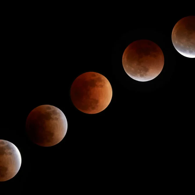 月の色は皆既食になるにつれて赤銅色と呼ばれる赤黒い色に変化していきます。個人的には皆既食の始まりと終わりの時間帯がお気に入り。満月の明るい部分と赤銅色の部分が陣地の取り合い合戦の攻防をしているかのように感じられてとても面白いです。そのじわじわと色が変化していく様子にぜひ注目してみてください。