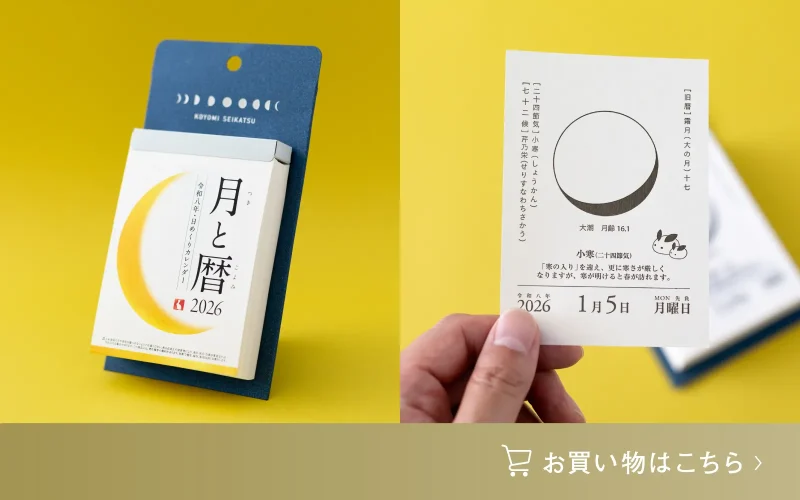 月の満ち欠けや二十四節気、七十二候の移り変わりから、日本の美しい季節が楽しめる日めくりです。