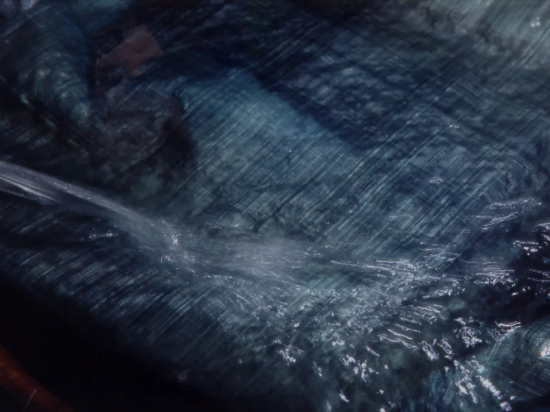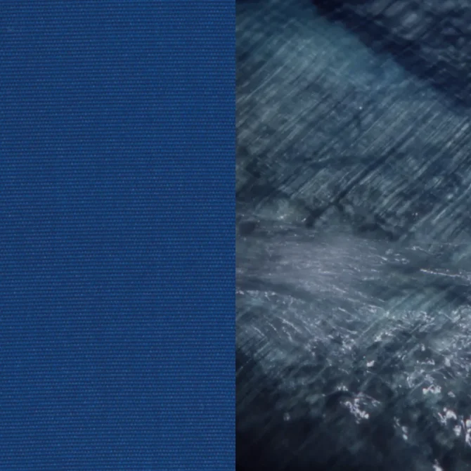 紺色を表すのには、蓼藍の葉を発酵させて「蒅(すくも)」もしくは「沈殿藍」を作り、それを甕に仕込んで更に発酵させて染める藍染を用います。甕の発酵具合や染める時間などで濃さや色相が変わりますが、藍系の色名は実に40色以上あると言われています。紺はその中でも濃く、わずかに赤、紫がかかったかのような深い色合いとして存在しています。しっかりとした濃い紺色に染めるには、何度も染め重ねて空気酸化させる必要があります。