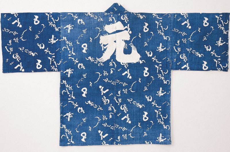 木綿の普及により、藍染を専門とする染屋を「紺屋」(こんやもしくはこうやとも呼ばれる)が様々な地域の町や村に出現するようになります。紺屋は藍の色持ちが良くなるように、調子を保ちながら、より濃く染め続けられるように建てた甕をいくつも持っていて、職人や商人のための紺色の法被、暖簾なども多く作っていました。それらは屋号や家紋などを白く染め抜いていたものも多く、「紺看板」という言葉もあったそうです。