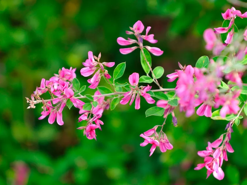 萩は、前回ご紹介した桔梗と同じく秋草の1つです。3枚の小さな葉が枝に連なり、その先に赤味がかった紫色から白へと美しいグラデーションを成した可憐な花を沢山つけます。日本では奈良時代から愛された花で、『万葉集』では141首もの萩の歌が詠われていて、植物の名が出る歌の中では桜や梅、松を抑えて、萩が最も多いのです。草かんむりに「秋」と書き、まさしく秋を代表する花ですが、漢字で「萩」と書かれるようになったのは後の時代です。語源は「生(は)え芽(き)」で、万葉仮名では「芽子」と書いて「はぎ」と読んでいたそうです。「芽子」は「めこ」とも読むため「妻子」、つまり女性に喩えた花として愛でられていました。