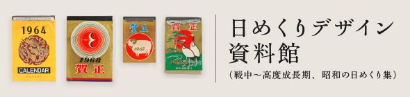 歴代の日めくりカレンダーのデザインをご紹介します。絵柄や製本方法の変化などをお楽しみください。