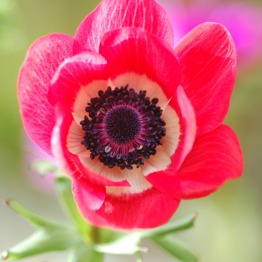 1つの花茎に赤、ピンク、紫、白などの大きな花を咲かせるので、1輪でも存在感のある花です。アネモネとはギリシャ語で「風」を表し、花言葉は「はかない恋」です。