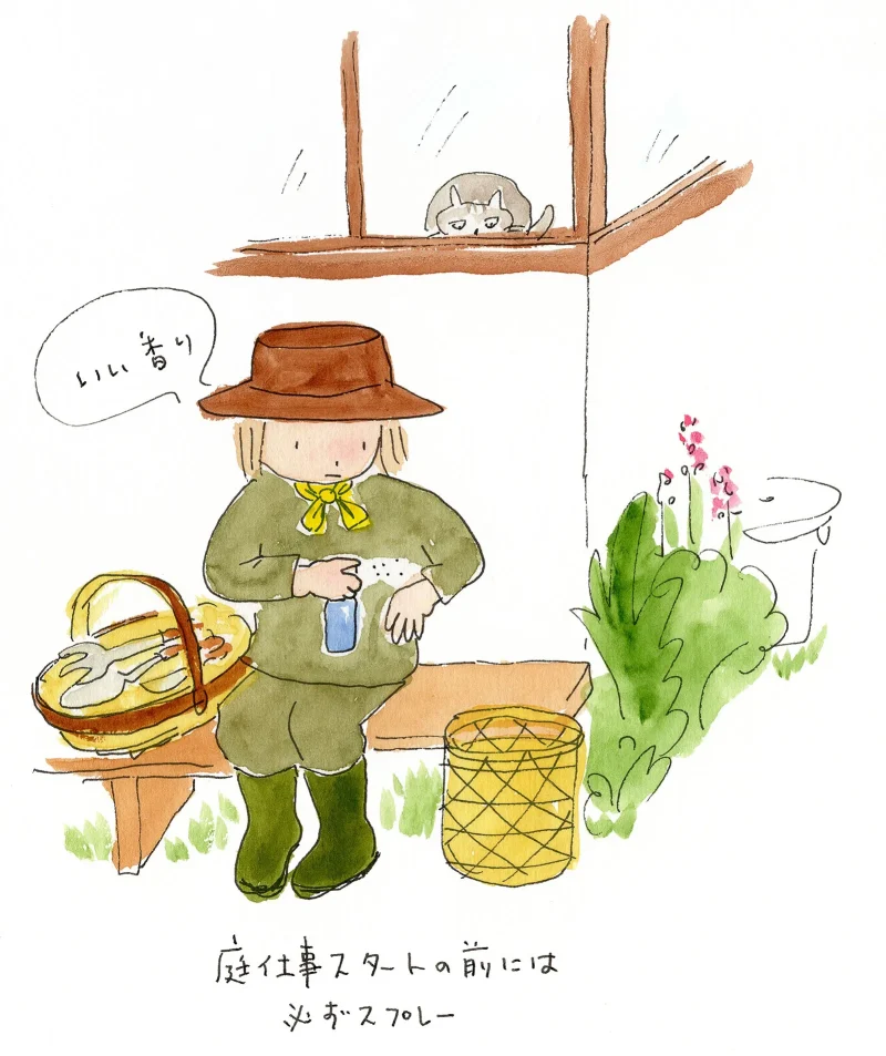 庭仕事を始める前には必ず、肌が露出しているところにスプレーします。スプレーすると、ハーブのさわやかな香りにうっとり。庭仕事を始めるぞ、とやる気も出るというもの。