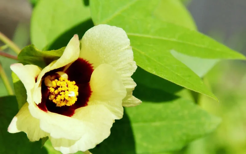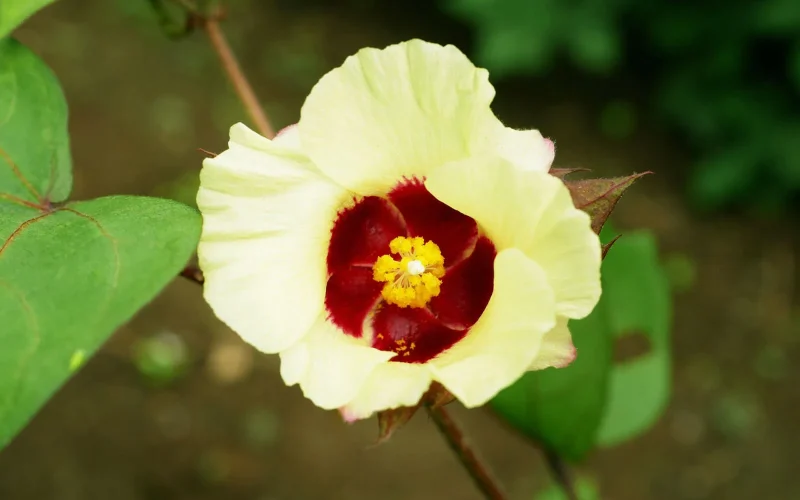 綿になってはじけるのはもう少し先になります。クリーム色の花はオクラの花によく似ていて、ふわりとした花びらのなかなか美しい花です。