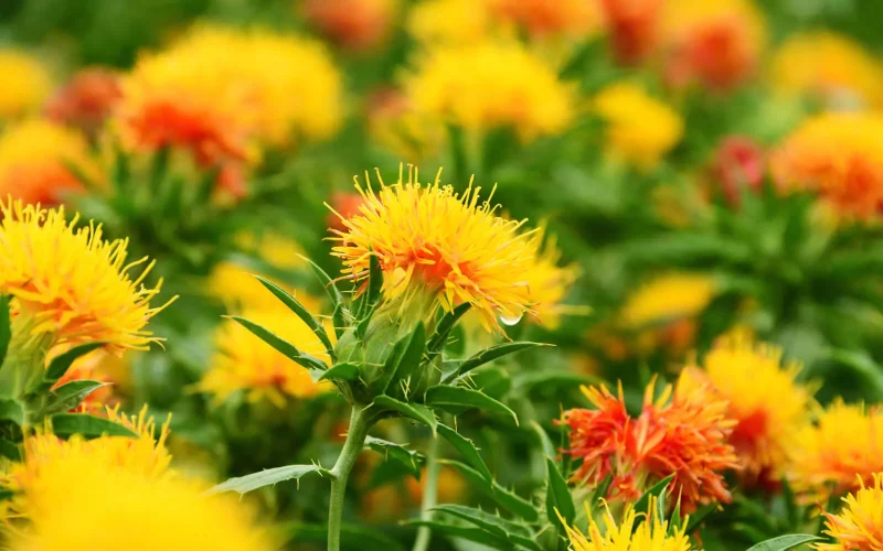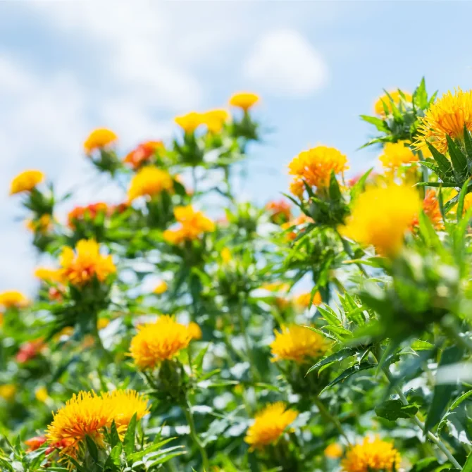 七十二候では「紅花栄(べにばなさかう)」を迎えました。前回の「蚕起食桑(かいこおきてくわをはむ)」と同じく、こちらもかつて栄え、大きな富をもたらした産業にかかわる一候です。七十二候では5月末に登場しますが、実際の開花はもう少し先になります。