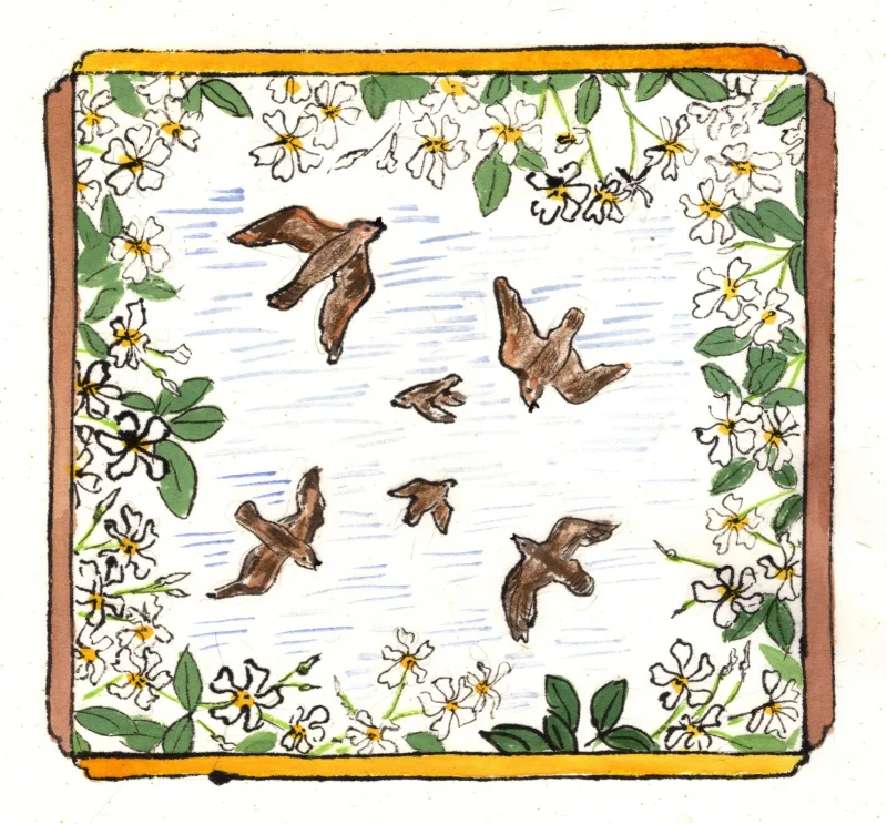 なんの鳥だろうと、鳴き声をたよりにあとで図鑑を調べてみると、どうやらヨタカのようです。ヨタカは、夏の夕暮れから飛び回って虫を捕るのだそう。