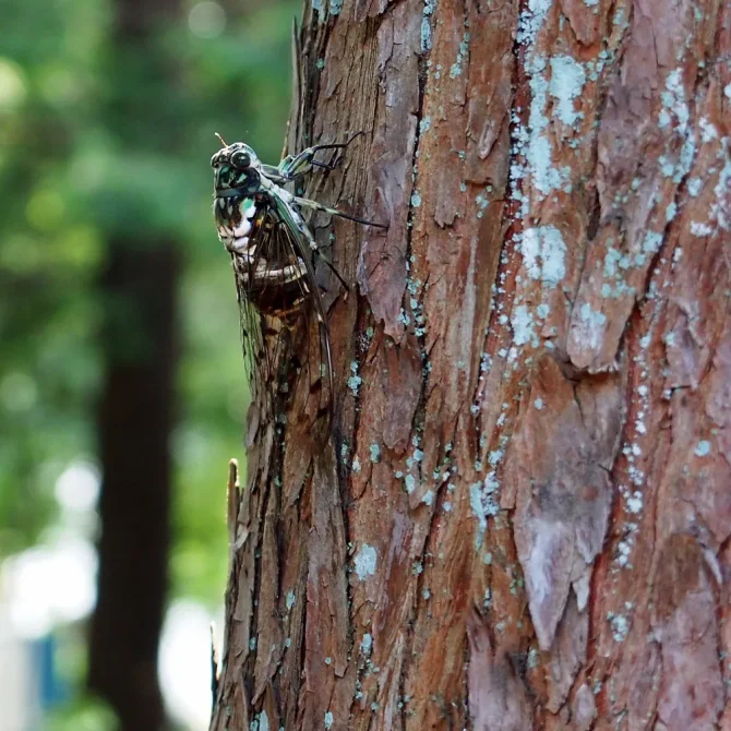 そして夏の盛りといえば「ミーン、ミンミンミンミン、ミーーーン」。「ミンミンゼミ」です。このセミは暑い日盛りが好きなようで、梅雨明けの猛暑が始まると、いよいよ勢いよく鳴き出します。「ミーン」という声を聞いた途端に、急に暑いと感じるのは面白いものだなと思います。関西では「シャシャシャシャシャシャ」と鳴く「クマゼミ」が夏の代表でしょうか。