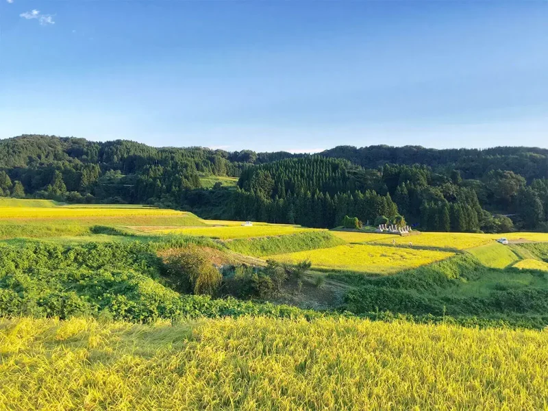 うちの田んぼは水が冷たいので、ようやく花が咲いて実が入り始めたところで、まだ青いままですが、実りの早い地域ではすっかり稲穂が頭を垂れ、黄色く色づき始めています。とはいえ、稲刈りはまだもう少し先です。