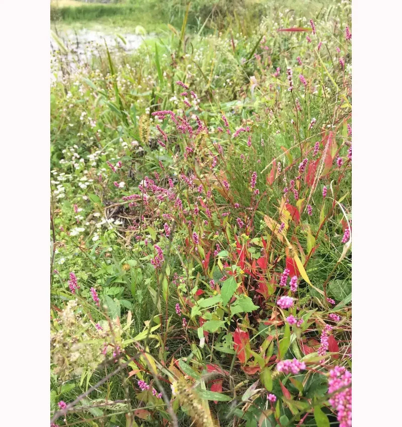 草紅葉(くさもみじ)も美しく、咲き乱れる花野をより一層、鮮やかに見せてくれます。草の葉は樹木よりも早く色づきますので、ぜひ大地の小さな赤を探してみてください。