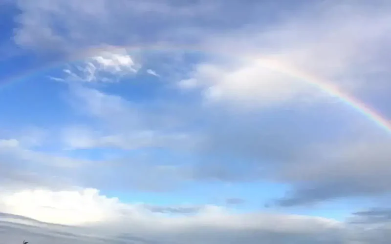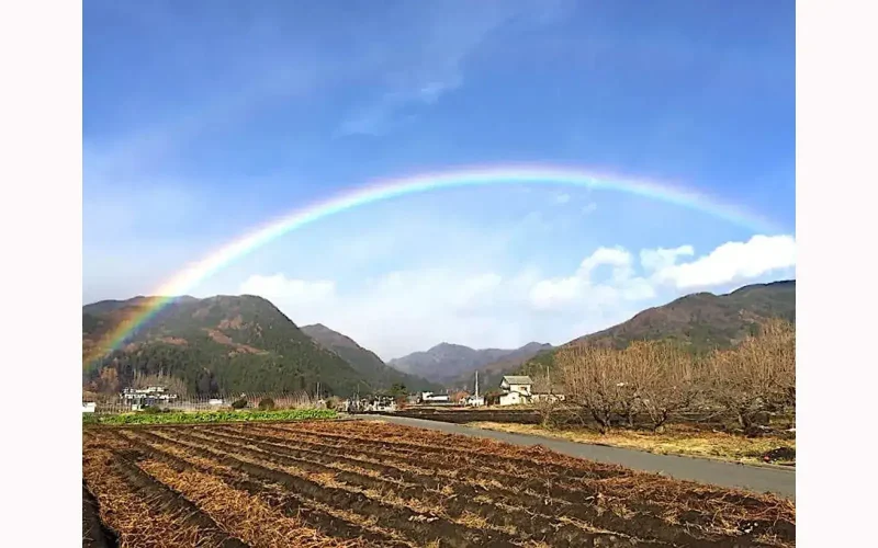 この写真は以前、サツマイモの収穫をしていたときに現れた虹です。大きく、見事な虹でした。日付をみると11月23日でした。