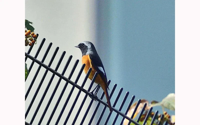 「キッ、キッ、キッ、ヒッヒッヒッ」と鳴くのは縄張り宣言のためです。多くの小鳥たちは冬になると群れで行動しますが、ジョウビタキは単独で行動し、木の梢やアンテナの上など目立つところに止まるので、鳴き声が聞こえたら、周囲の高いところを見渡してみてください。お腹のオレンジが火の色のようでもあり、美しい鳥です。縄張りが決まると人にも慣れてきて、手に乗ることもあるそうです。