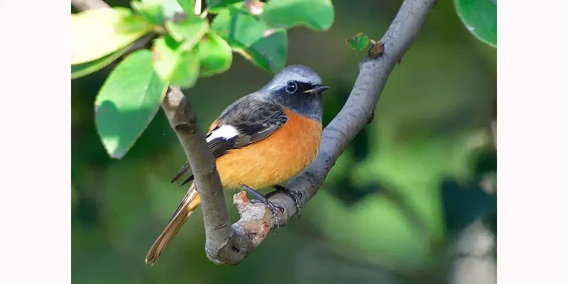 ところで、わが家では毎日のように「ヒッヒッヒッヒッ」というジョウビタキの甲高い声が響いています。ジョウビタキは冬鳥の代表格で、市街地でもみかけるごく身近な鳥です。黒い羽に白い紋が特徴なので、紋付き鳥ともいいますが、ジョウビタキの語源は「尉(じょう)+火焚き」です。尉は能楽の翁のことで、オスの頭が翁を思わせるような銀白色であることから。そして鶲(ひたき)の語源は「火焚き」で、鳴き声が火打ち石のような高い金属音であることから、この名がつけられています。