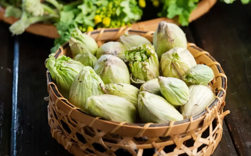 食用に適しているのは苞が開かないこの蕾の状態のときのみで、小さいものほど苦味が少なく、甘みがあります。