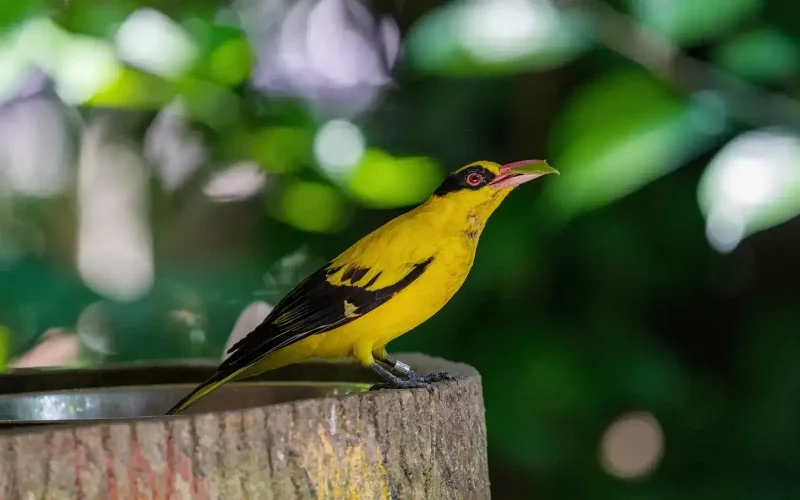 蛍光色に近い黄色と黒のツートンカラーの鮮やかな羽を持ち、黄鳥、金羽、金公子、黄伯鳥など、中国ではさまざまに呼び名がありますが、皇帝や天子のシンボルが黄色であることから尊ばれ、春を告げる鳥として知られていました。