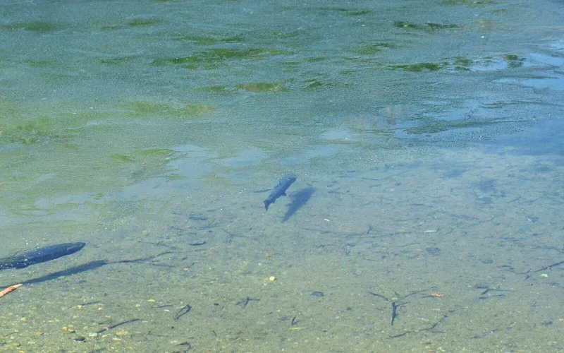 冬の間、水底に身をじっと沈めている魚たちですが、春の陽光を浴びて水面がきらめき出すと、様子を伺うように水面近くに上がってきます。