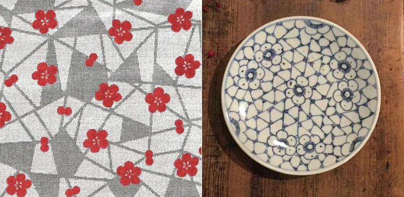 そしてこの氷割れに梅を合わせた文様は、「氷割れ梅」または「氷裂梅文」、「氷梅(ひうめ)」と呼ばれています。日本の早春を表現する定番の文様であり、おめでたいものの表徴でもあります。