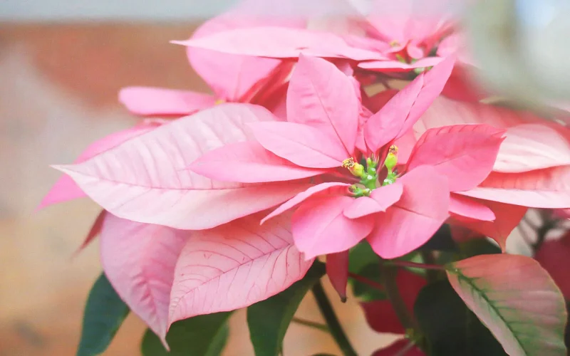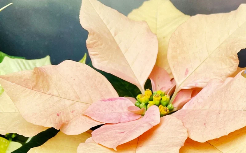 苞葉の色は、原種ではすべて赤。近年は品種改良によって、ピンクやクリーム、白などとカラフルになり、プリンセチアという新しい品種名までつけられています。