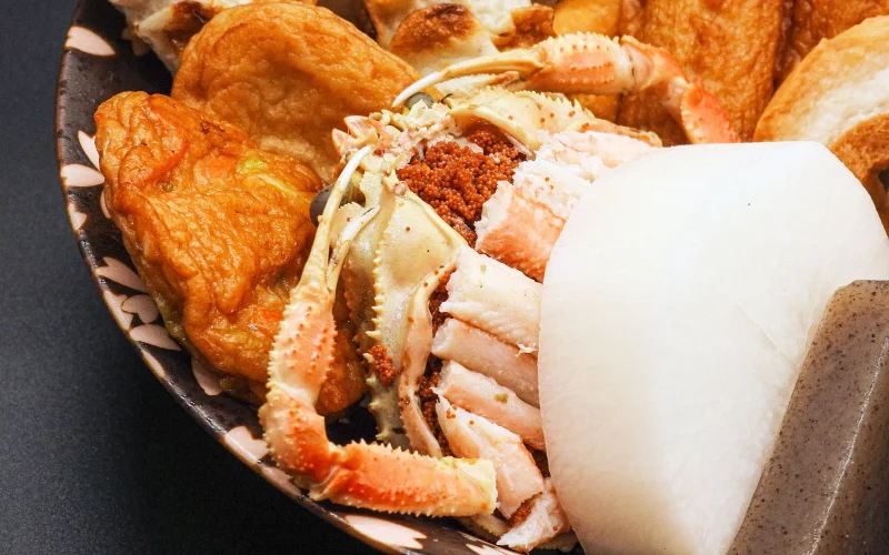 中でも「カニ面(カニヅラ)」という具材がそそられる。ズワイガニのメスである香箱ガニの甲羅の部分に、カニ身や内子・外子を詰めたものだ。お値段は時価によるそうで、金沢でも家庭では出ることはないらしい。冬の2か月間だけ食べられるそうで、次こそはこのために金沢へ行こうと目論んでいる。