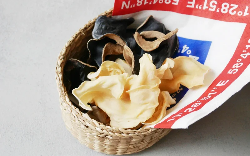 ちなみに、白きくらげと黒きくらげはそもそも違う植物で、薬膳的にも違う働きを持ちます。黒きくらげは滋陰補血、涼血止血、益精で、血と潤いを補い、精を補うものとされます。対して白きくらげは滋陰潤肺、益胃、生津で、胃腸を調えて潤いを補うものとされています。肌や喉の乾燥、喉がよく乾いてコロコロ便がでるような方には白きくらげもいいでしょう。