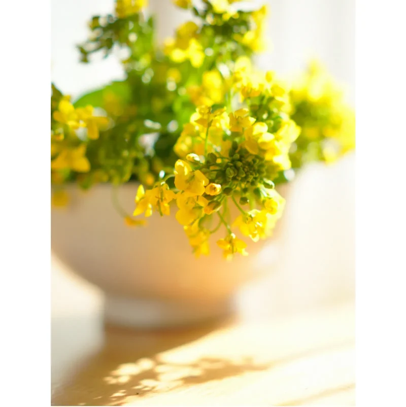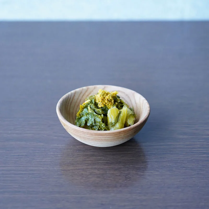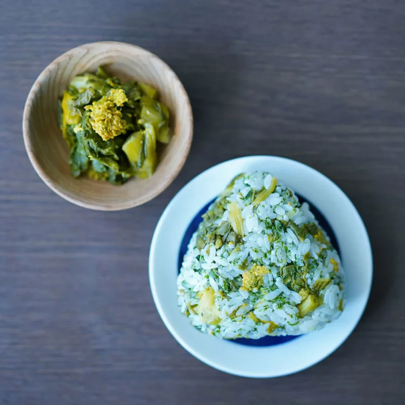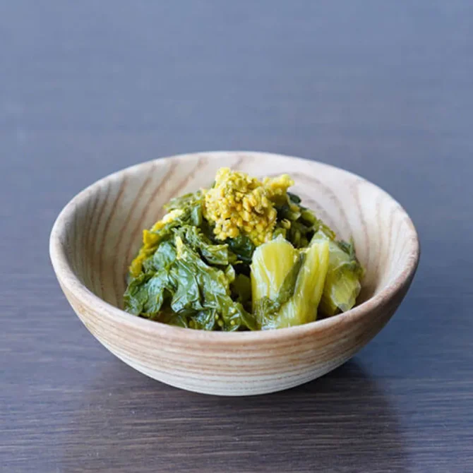 艶やかな菜の花をキュッと絞り、昆布と塩を合わせて
