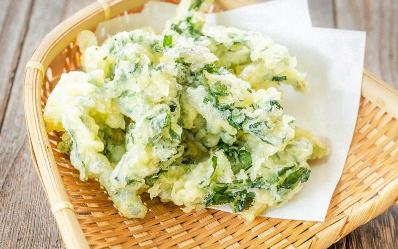菜の花の天ぷら、菜の花のパスタ、菜の花の椀物。