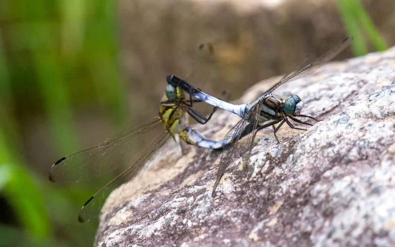 交尾をしているところを見かけると、色の違うトンボがくっついているので、ケンカをしているように見えるかもしれません。実は仲良しなんです。