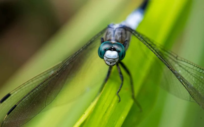 似たトンボにオオシオカラトンボと呼ばれる昆虫もいますが、シオカラトンボの特徴として深いグリーンの目が印象的です。