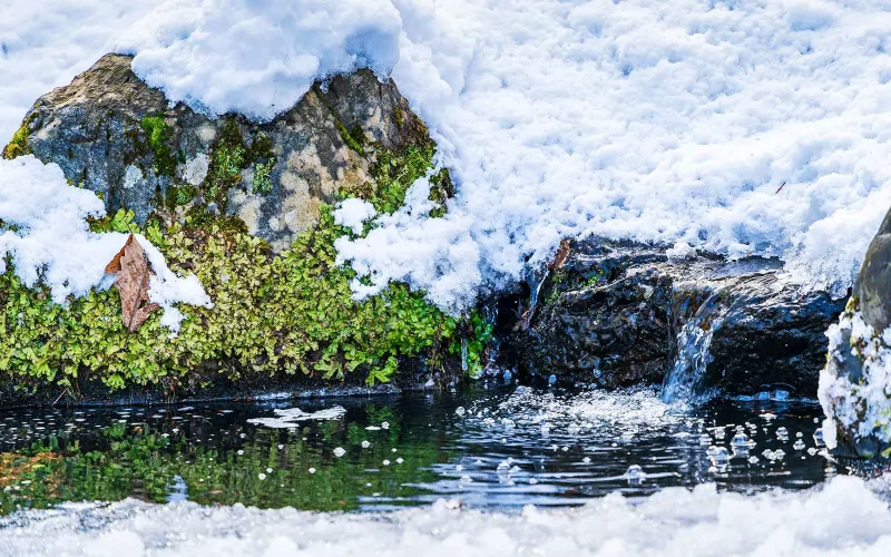 雪国や山岳地帯では、冬の間に降り積もっていた雪が春になって暖かさとともに少しずつ解け出してくると、川には流れの勢いが増して、湖などは水の動きが感じられるようになってきます。