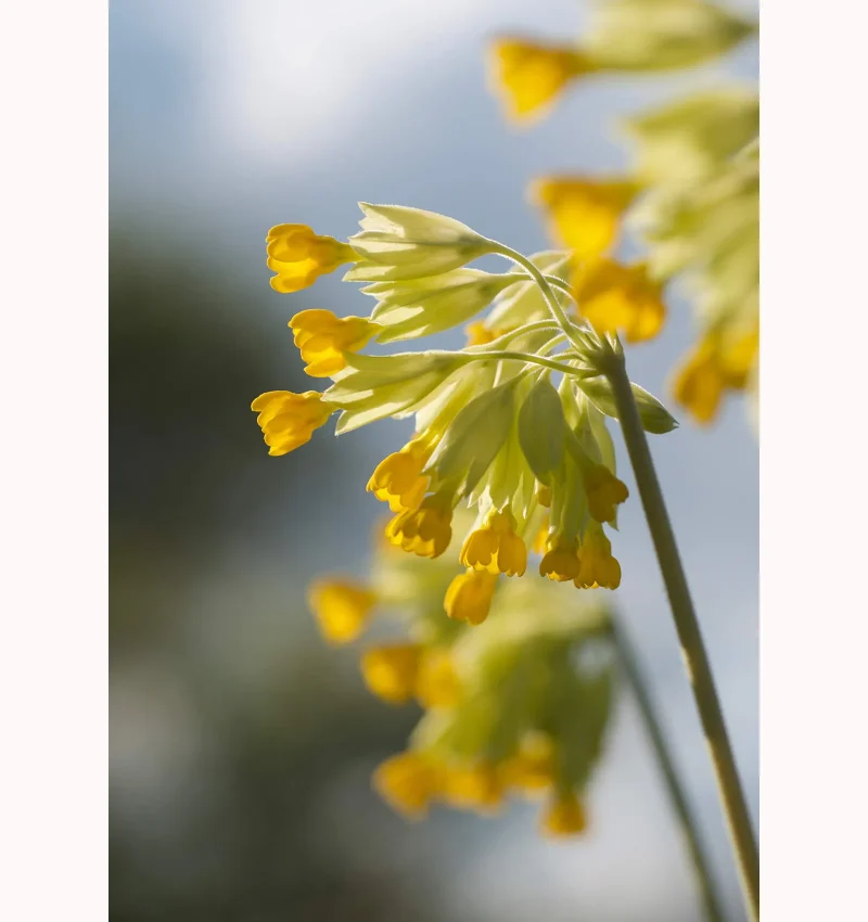 散る桜の名残のごとく、サクラソウ(桜草)がピンクや白の花を咲かせる頃、ヨーロッパでも同じサクラソウ属のカウスリップが雪解けの地より顔を出し、いかにも幸福そうな黄色い花で春の訪れを告げます。和名はキバナノクリンザクラ(黄花九輪桜)。ヨーロッパでは春の野を象徴する薬用・食用ハーブとして古来親しまれ、絵画や児童文学、詩歌などにも多く登場する、なじみ深い花の一つです。