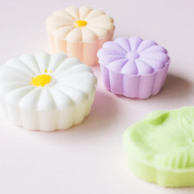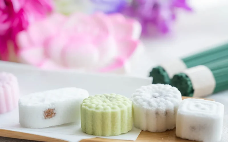 私の場合、まさにそれが今回の主役「落雁(らくがん)」です。落雁といえば、お盆を始め、お仏壇に供えるもの、というイメージがありますね。蓮の花や菊、フルーツなどモチーフはかわいいものの、なんでこんなに地味なのだろう、なぜこのお菓子をお供えするのだろう、と疑問に思っていました。