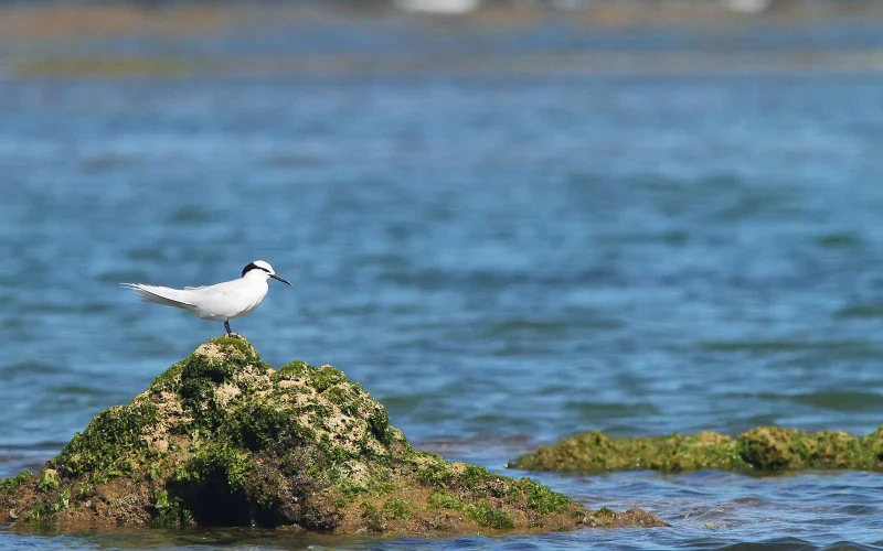 エリグロアジサシは、インド洋から西太平洋にかけての地域に分布する、まさに典型的な“トロピカル・バード”。日本は分布の北限にあたり、奄美や沖縄、宮古、八重山といった南西諸島の島々で見られます。これらの島々の海岸にある小島や磯にとまっていたり、その周囲を飛び交ったりする姿がよく観察されます。