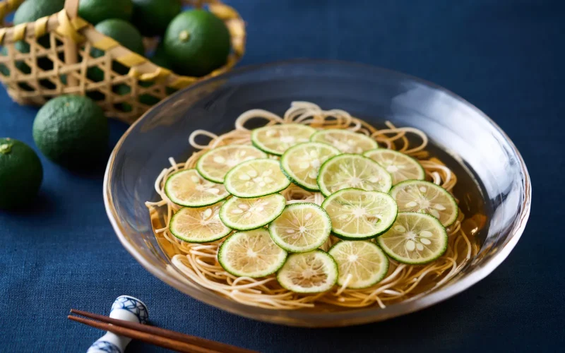 徳島の家庭の食卓には酢橘が欠かせず、焼き魚に添えるだけでなく、そうめんに絞ったり、味噌汁に加えたり、日常的にいろいろな料理に使われています。和食にとどまらず、魚のムニエルや牛肉のバターソテーなどの西洋料理に絞っても、柑橘の軽やかな香りが食欲をそそります。