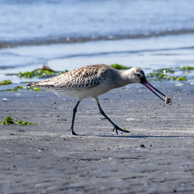 今回ご紹介するオオソリハシシギも、そんな渡り鳥のひとつです。繁殖地から越冬地へ向かう長い旅の途中、日本の海辺に立ち寄って羽を休めていきます。