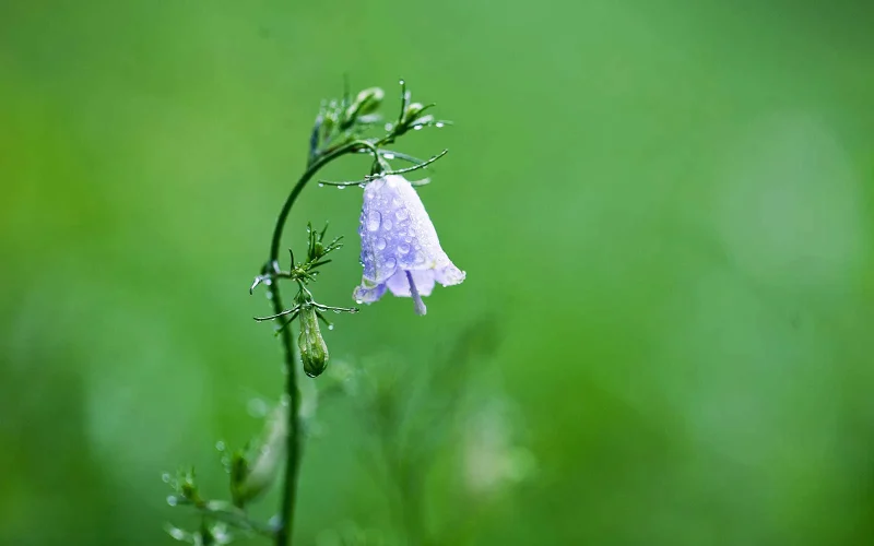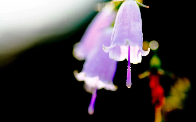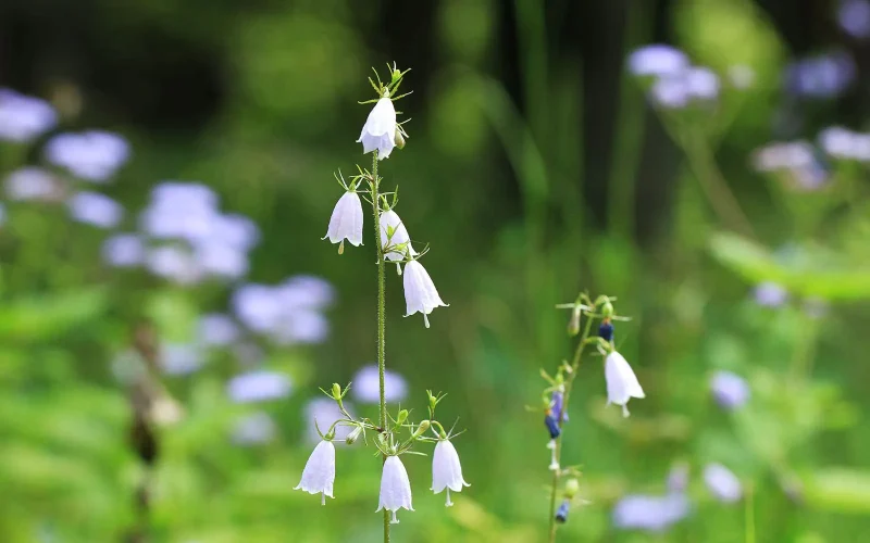 花の長さは2㎝に満たないほどで、花色は淡い青紫、あるいは白。同じキキョウ科のホタルブクロをそのまま小さくしたかのようで、とても清楚で可憐です。
