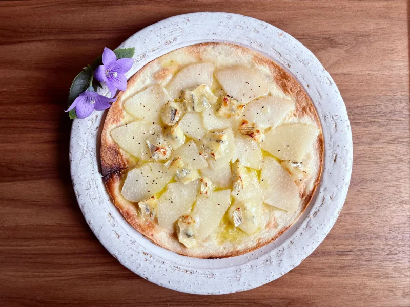 今日のレシピはイタリアで食べて感動した「洋梨のピザ」です。