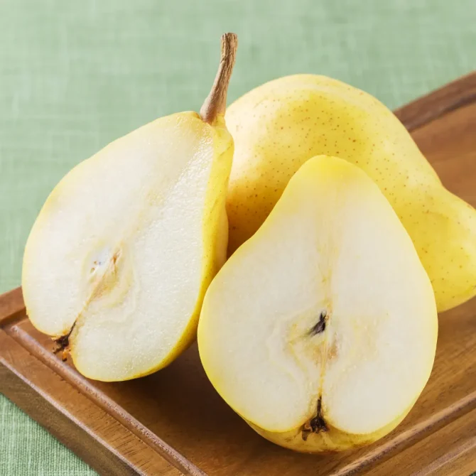 完熟した洋梨は冷蔵庫で保存して早めに召し上がってください。