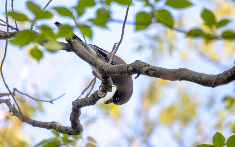 そんな賢い暮らしをしているカケスですが、もうひとつ、とても興味深い習性があります。それは「鳴き真似」です。ふだんは「ジェージェー」と濁った声で鳴きますが、それとはまったく違う、他の鳥の鳴き声を真似ることがあるのです。