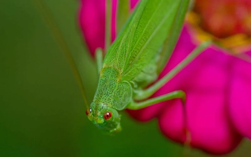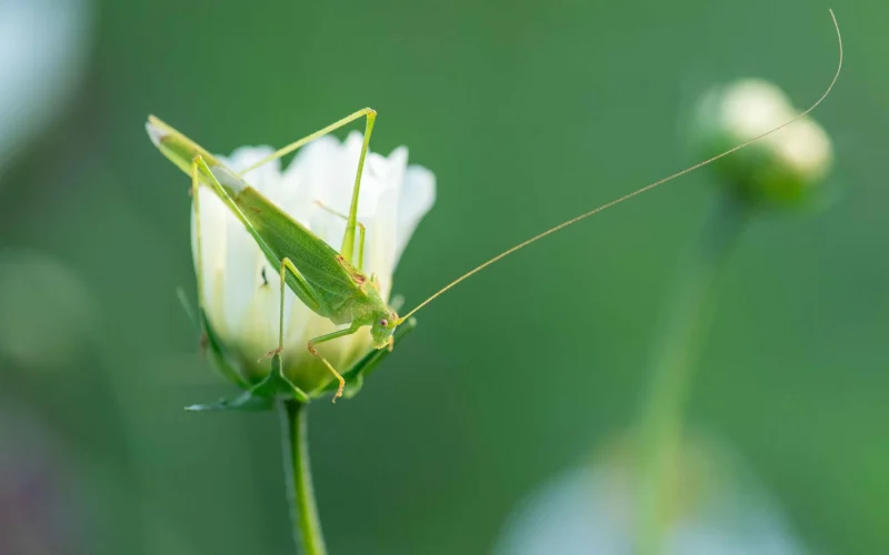 顔つきだけはキリギリスにも近い雰囲気があるのですが、食べるものは植物の新芽や花びらなど柔らかいところを好んで食べる食性です。