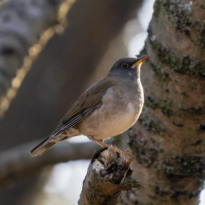 シロハラが日本で過ごすのは4月中旬くらいまで。すっかり春になった雑木林の梢にとまり、「キョロンキョロン」と楽しげにさえずる姿を目にすることもあります。そして、いつのまにか姿が見えなくなり、北の繁殖地へと旅立っていくのです。