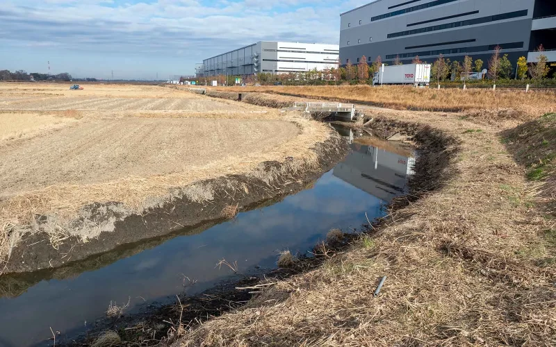 1月の水田は、土がからからに乾ききっていて、一見すると生きものの気配がまったくない世界のように見えます。ところが実際にはそんなことはなく、冬には冬ならではの鳥たちが静かに暮らしています。なかでも、“土水路”と呼ばれるコンクリートで固められていない昔ながらの用水路にはさまざま生きものが見られ、今回紹介するタシギもこうした土水路でよく見られる鳥の一つです。
